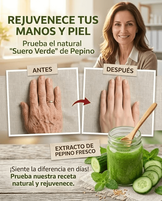 Te miras las manos bajo la luz del mercado o al saludar en misa y sientes ese pequeño golpe de vergüenza al notar las arrugas más marcadas, la piel reseca, las manchas que antes no estaban. No es solo estética, es esa sensación de que el tiempo se está viendo más de lo que quisieras. Y aunque hayas probado cremas costosas, a veces parece que nada cambia. La buena noticia es que existen hábitos sencillos, con ingredientes tan comunes en México como el pepino, que pueden ayudarte a cuidar tu piel de forma natural… y al final te compartiré un detalle que casi nadie toma en cuenta y que puede marcar la diferencia.