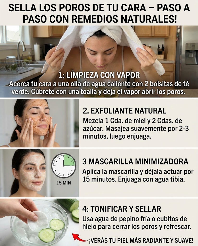 La sensación de poros visibles puede generar incomodidad, sobre todo cuando la piel luce cansada o sin luminosidad. Con el tiempo, factores como el calor, la contaminación y ciertos hábitos diarios pueden hacer que la textura del rostro se vea irregular y menos uniforme. La buena noticia es que existen rutinas sencillas, accesibles y de origen natural que pueden ayudarte a mejorar la apariencia de la piel y devolverle una sensación de frescura… y al final del artículo te contaré un detalle clave que casi nadie toma en cuenta y que marca la diferencia.