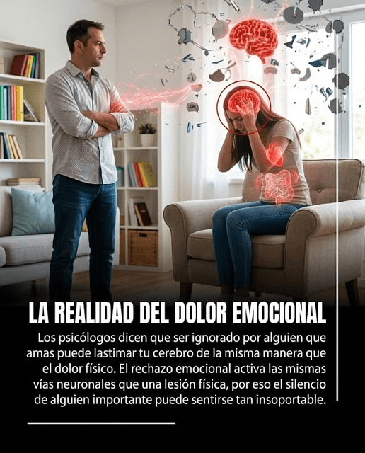 El cerebro humano es increíblemente complejo. Cuando sentimos que alguien nos rechaza emocionalmente, como cuando nos ignoran o nos dan la espalda, el cerebro no distingue entre ese dolor y el que podríamos sentir físicamente. Investigaciones científicas han demostrado que el rechazo activa la corteza cingulada anterior y la corteza insular, áreas del cerebro que se activan también durante el dolor físico.