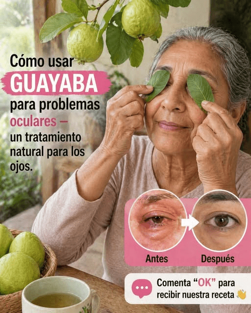 En redes sociales circulan imágenes que aseguran que la guayaba o sus hojas “sirven” para molestias oculares. El mensaje suele verse convincente: una persona mayor, un supuesto antes y después, y frases como “natural” o “receta antigua”.