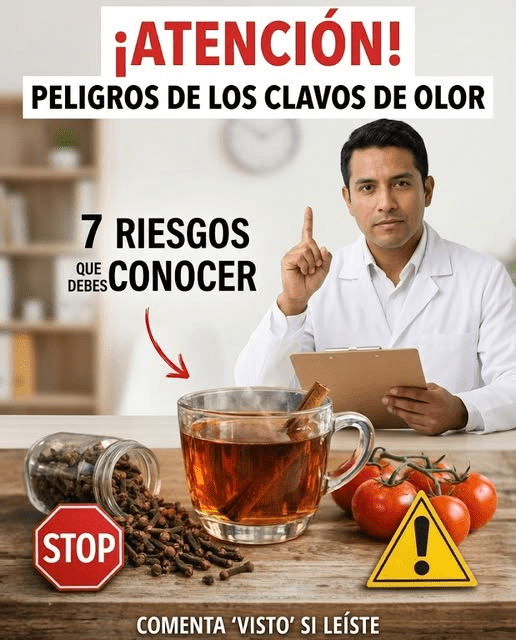 Imagina esta escena común en muchas cocinas mexicanas: preparas un té caliente de clavo de olor porque alguien te dijo que es “natural y siempre seguro”. Lo bebes confiado… pero horas después aparece acidez, mareo o una molestia extraña en el estómago. La mayoría de las personas nunca sospecha que algo tan pequeño como un clavo de olor podría tener efectos secundarios si se usa en exceso. La realidad es incómoda: incluso los remedios naturales pueden traer riesgos cuando se usan sin medida. Y lo más sorprendente… es que el último punto de esta lista suele ser el que casi nadie espera.